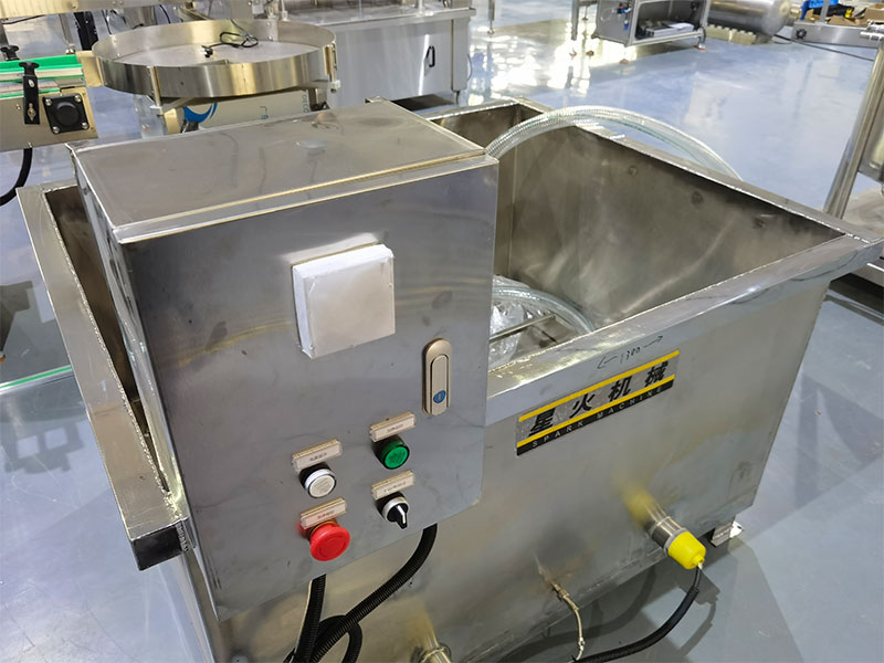 蜂蜜灌裝機(jī)旋蓋生產(chǎn)線整體運(yùn)作模式采用PLC+HMI智能操作原理,通過一鍵式便捷式的操作,可提高蜂蜜從原材料直至成品輸出全部工序,操作人員僅需在觸控屏上選擇相對應(yīng)的生產(chǎn)規(guī)格,蜂蜜灌裝機(jī)旋蓋生產(chǎn)線可自動(dòng)開始投產(chǎn),為了確保灌裝食材的安全性,這一整套機(jī)械設(shè)備全部采用不銹鋼材質(zhì)打造,不僅擁有良好的密封性和耐腐蝕性,還可以延長設(shè)備的長久使用期限,蜂蜜灌裝機(jī)旋蓋生產(chǎn)線啟動(dòng)后,振動(dòng)電機(jī)帶動(dòng)篩網(wǎng)振動(dòng),使的蜂蜜快速通過網(wǎng)篩,經(jīng)過篩選后的蜂蜜需經(jīng)過加熱才能保持流動(dòng)狀態(tài),以便于后續(xù)的灌裝,在進(jìn)入投產(chǎn)工序時(shí),理瓶機(jī)開始自動(dòng)整理雜亂的瓶子排列程序,輸送帶則會(huì)帶動(dòng)瓶子進(jìn)入灌裝區(qū)域,在灌裝區(qū)域內(nèi)紅外感應(yīng)控制器將會(huì)實(shí)時(shí)檢測瓶子的進(jìn)出,檢測到容器口時(shí),灌裝頭下降,已經(jīng)被提煉好的蜂蜜將會(huì)在全封閉式的狀態(tài)下快速充填進(jìn)瓶、旋蓋、貼標(biāo)的生產(chǎn)工序。