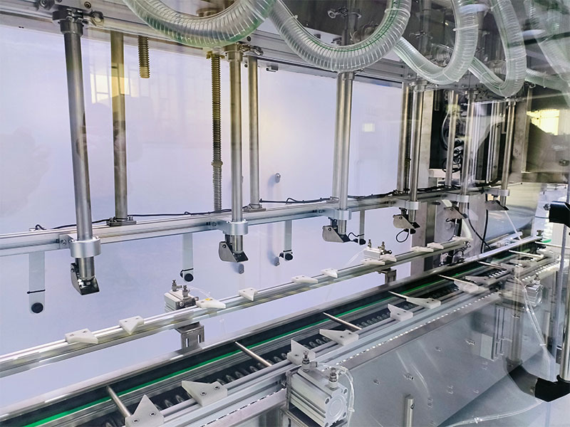1、自動(dòng)上桶、定位,全自動(dòng)化工桶灌裝機(jī)通過滾筒線,可自動(dòng)將空的容器桶送至灌裝工位,燃油再由氣動(dòng)夾桶裝置,進(jìn)行自動(dòng)夾緊并精確定位操控。