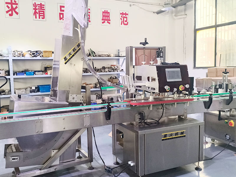 直線式旋蓋機為一條多臺機械設備的聯動生產機械,它集中了輸送機、灌裝機、上蓋機、旋蓋、夾蓋機、貼標機等自動化設備,形成了流水生產線設備。整套灌裝旋蓋機械能夠從容器的輸送直至旋蓋結束的全部內容,都運用這款設備來完成。