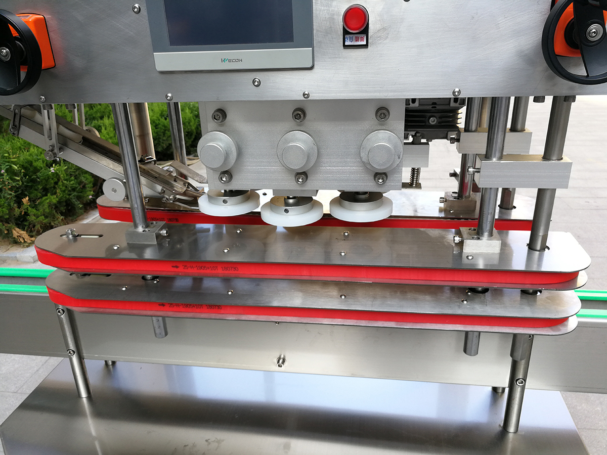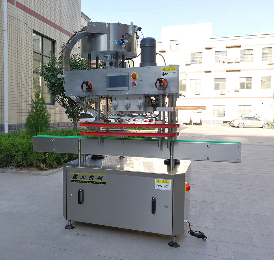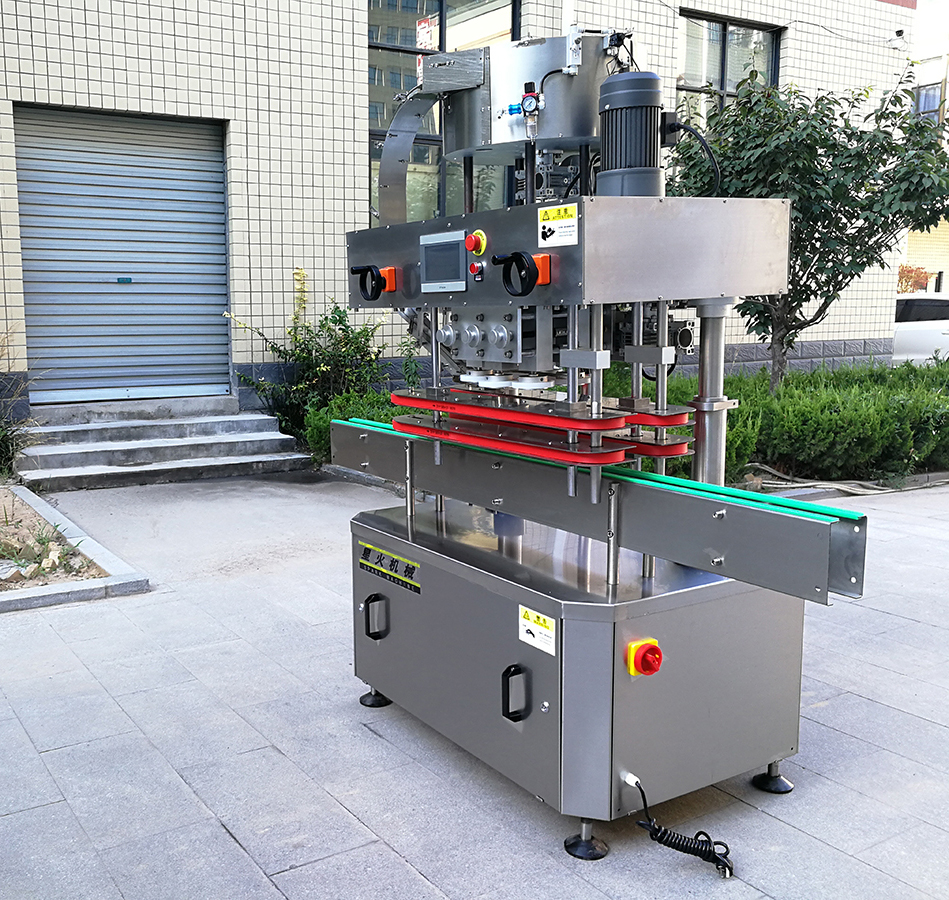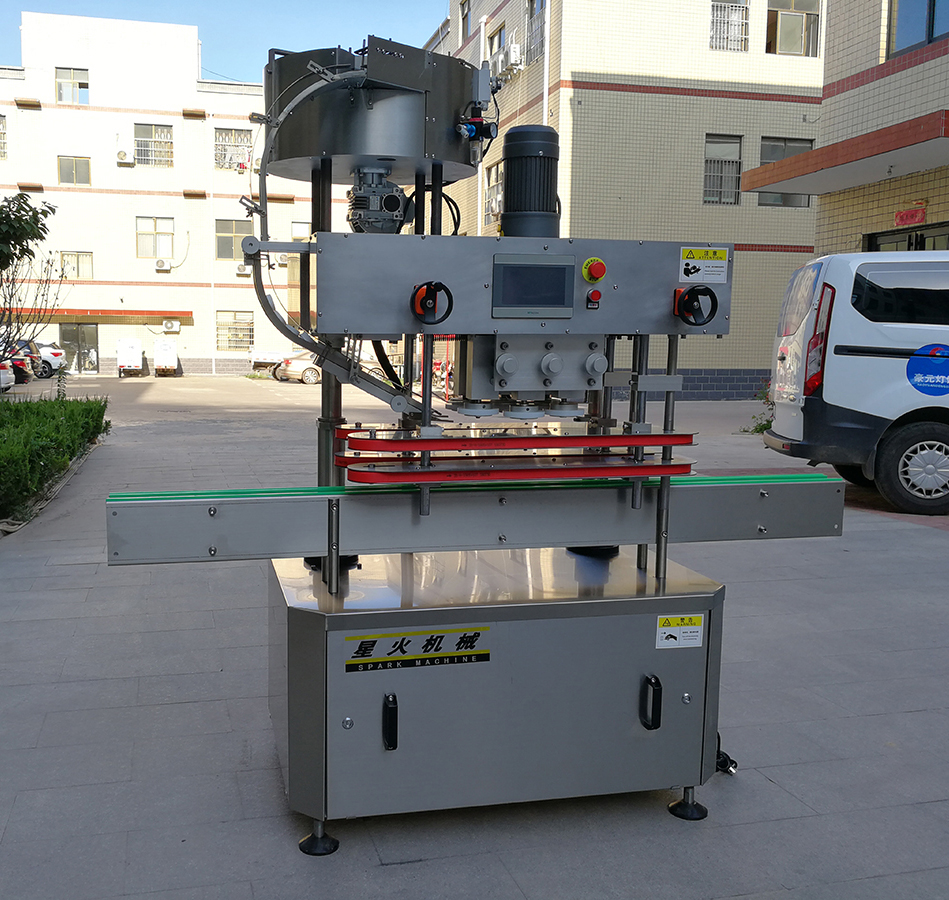 XH-160B型全自動直列式壓蓋機是我公司很新改進的一種新型壓蓋機。四臺調速電機分別用于供蓋、夾瓶、傳送、壓蓋,機器自動化程度高,穩定性好,調節方便、更換瓶型或蓋時無需備件,只需作調整即可完成(如配上蓋機,可進行自動上蓋)。外觀美觀大方、靈巧、壓蓋速度快,合格率高,可適用于食品、醫用、化工、飲料等行業的不同瓶形的旋蓋。