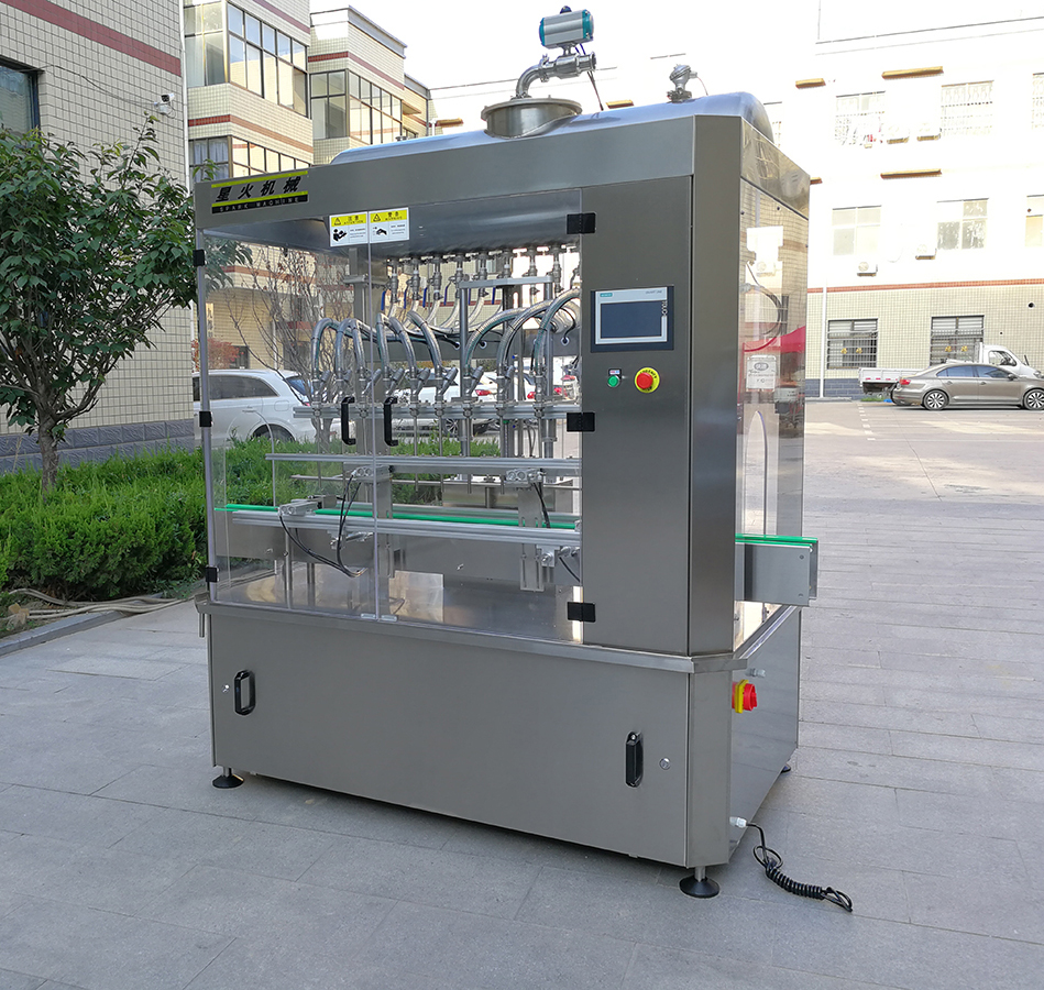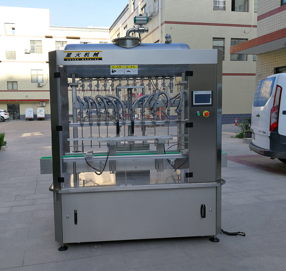 3、該機機身、機架由不銹鋼制成,物料桶到灌裝頭使用食品級塑料管連接,符合食品衛生要求,整機設計簡潔大方,清洗方便